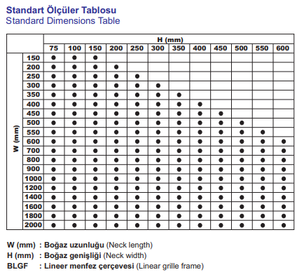 Havalandırma kanallarından ortama düşük sıcaklık farklarına sahip sıcak veya soğuk şartlandırılmış havanın dağıtımında veya ortamdan kirli havanın toplanmasında kullanılırlar. Cihazlarda emiş menfezi ve arızalarda müdahale kolaylık sağlamak için lineer müdahale kapağı kullanılır.